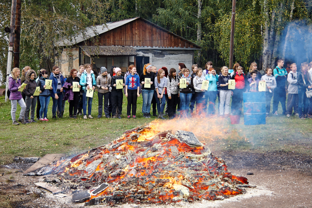 Перед отъездом из лагеря студенты еще раз вдохнули свежего воздуха Черноисточинского побережья, погрелись около костра, и дружным строем отправились для отправки домой..