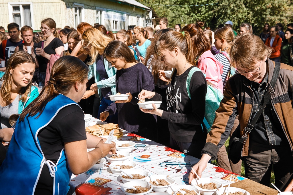 Лилия Евгеньевна Егорова – директор филиала РГППУ в г. Н.Тагил – поприветствовала всех студентов и участников Звездного похода, а затем пожелала всем приятного аппетита. Пока студенты ели кашу, приготовленную в настоящей полевой кухне, для них полыхал походный костёр, пламя которого было так высоко, что захватывало дух.