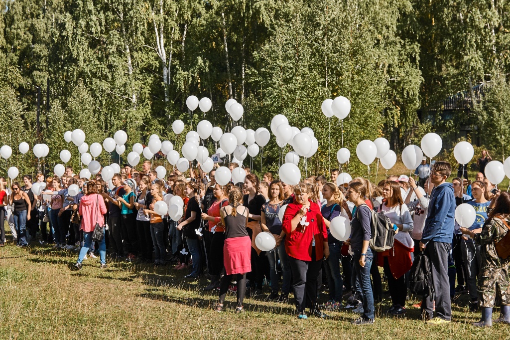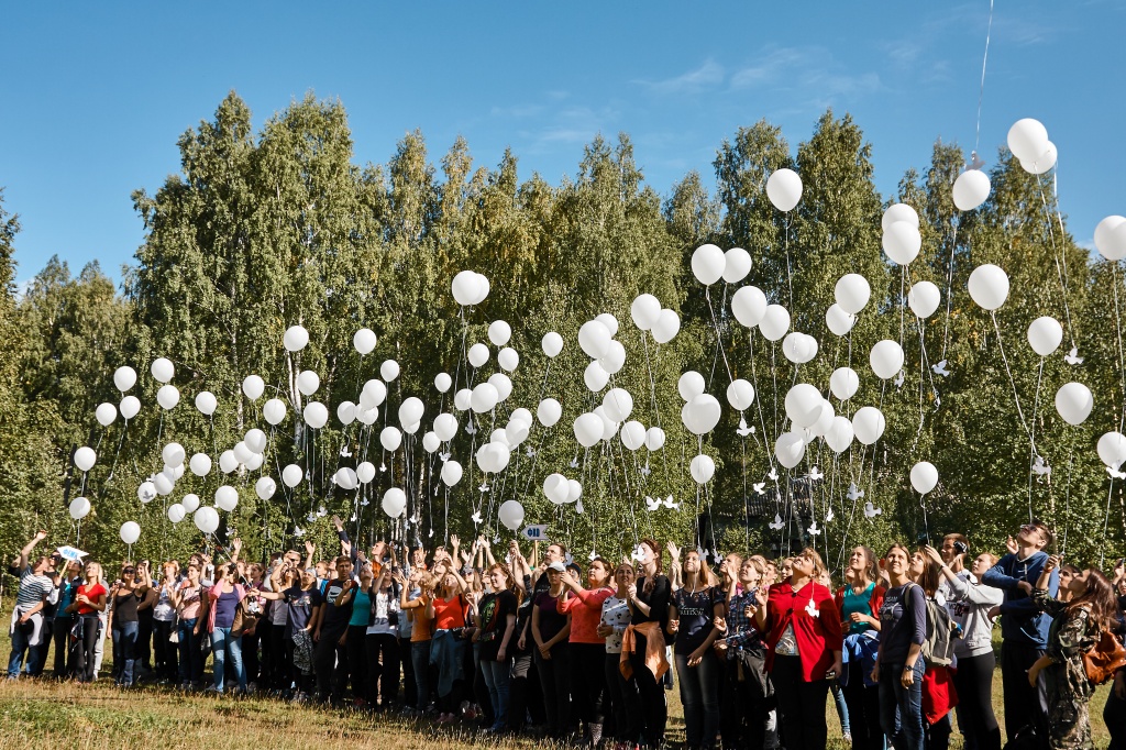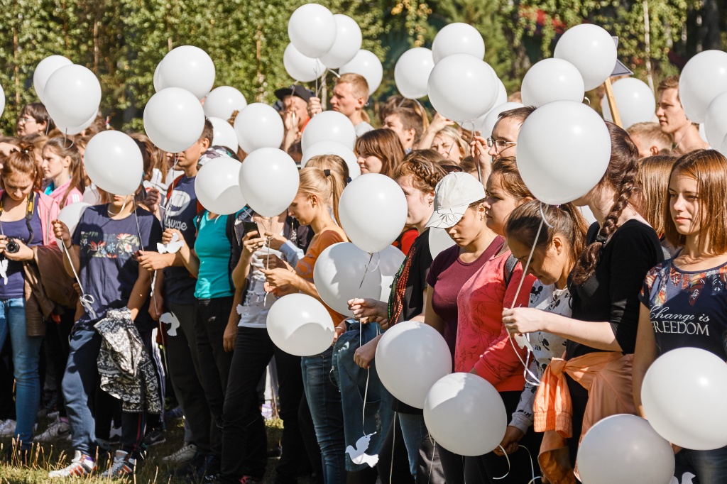 3 сентября ровно в 15:05 множество белых шаров с прикрепленными к ним белыми голубями, символизирующими мир и доброту, были отправлены в небо всеми участниками акции.