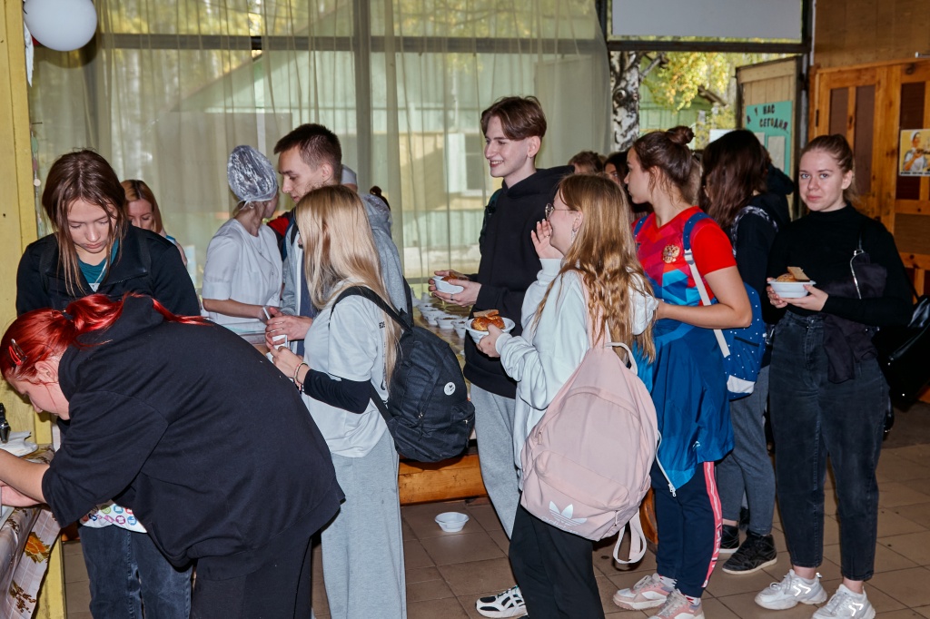 На самой спортивной базе первокурсников ждал квест и флешмоб от студенческих деканов всех факультетов. А затем начался творческий дебют первокурсников, в котором каждый факультет готовил свой номер. Так, команда ФСБЖ выступила с песней Муслима Магомаева «Герои спорта»; ФХО разыграли сценку по мотивам мультфильма «Головоломка»; СГФ взяли за основу формат интервью и обыграли его; ребята с ФЕМИ выступили с зажигательным танцем; ФФМК спели вдохновенную песню под гитару, а ФППО сочинили и исполнили песню в соответствии со своими направлениями. Все номера от факультетов – песни, танцы, рисунки и сценки исполнялись на импровизированной сцене.