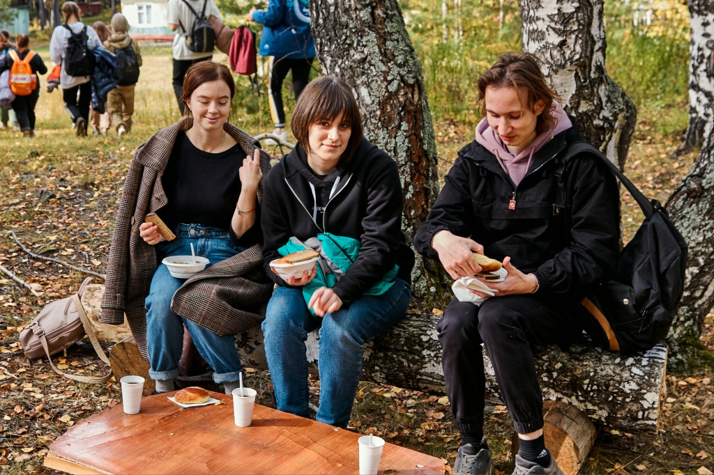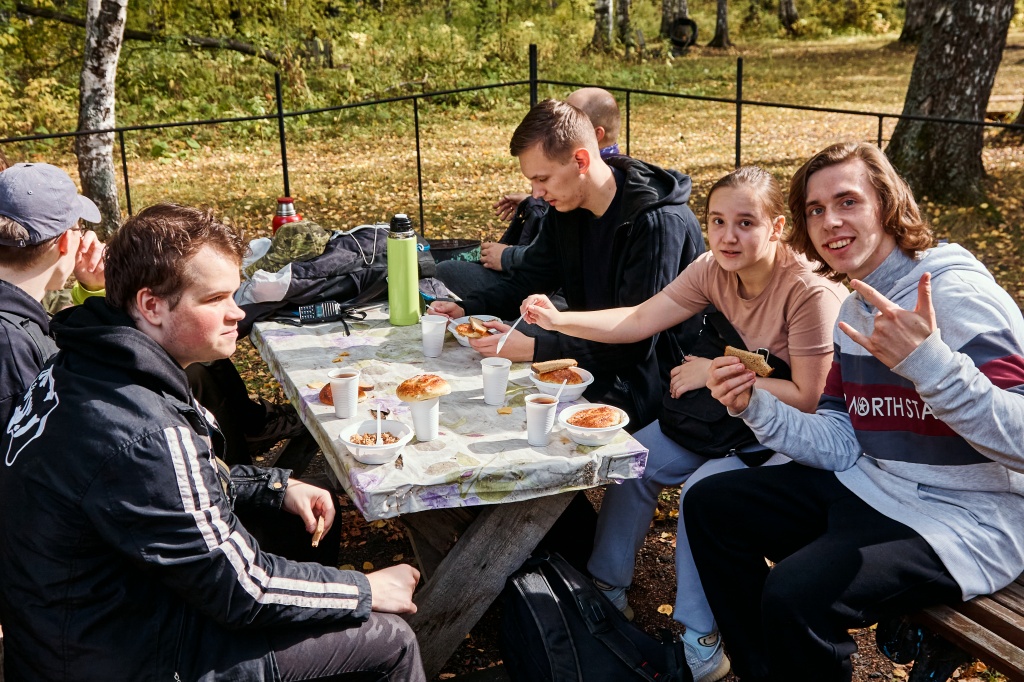 Это испытание сплотило всех. Сложилось впечатление, что идут не отдельные факультеты, а одна большая семья. По прохождении половины дистанции был запланирован привал, на котором можно было перекусить и восстановить свои силы.